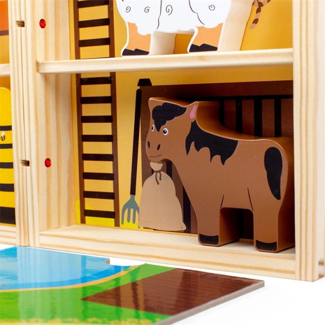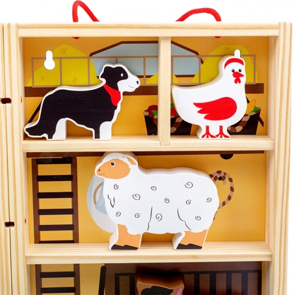 Deze stijlvolle houten boerderij klapt in een oogwenk uit tot een complete speelscène en na het spelen berg je alles eenvoudig weer op in de doos. Ideaal voor op reis – compact, duurzaam en altijd klaar om te spelen, waar je ook bent. Hoogwaardig massief hout en gladde randen zorgen voor veilig spelen voor de allerkleinsten.