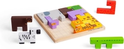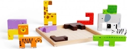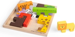 Ontdek de kleurrijke safariewereld met een kwaliteitsvolle houten puzzel die kinderen aanspreekt met vriendelijke dierenillustraties. Elk stukje is zo gevormd dat het perfect in het houten frame past en ook dienstdoet als los figuurtje voor vrij spel. Dit zintuiglijke spel ondersteunt concentratie, geduld en het plezier van ontdekken.