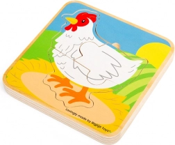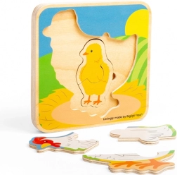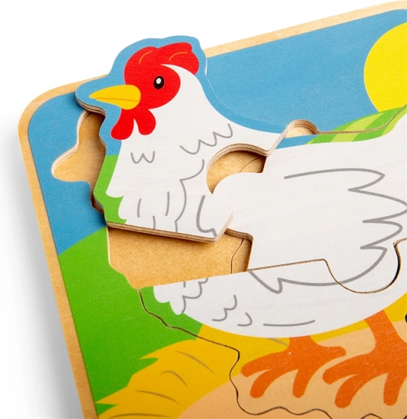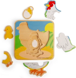 Ontdek een leuke en leerzame houten puzzel met de levenscyclus van de kip – van ei tot volwassen kip. Ideaal voor het ontwikkelen van fijne motoriek, oog-handcoördinatie en logisch denken. Hoogwaardige afwerking van verantwoord verkregen hout, prachtige kleuren en kindvriendelijk ontwerp voor kinderen vanaf 1,5 jaar.