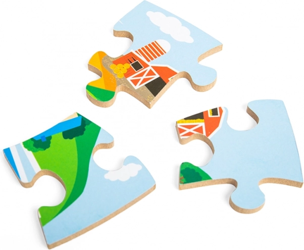 Gladde en stevige houten stukjes zijn eenvoudig te leggen, stimuleren de fijne motoriek en weerstaan dagelijks speelplezier.