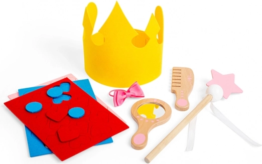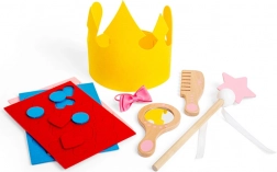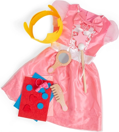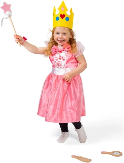 Het kroontje, spiegeltje, de kam, handschoenen en toverstaf zorgen voor nieuwe speelscenario’s en stimuleren de verbeelding.