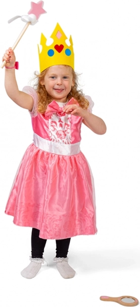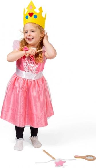 Verander elk speelmoment in een koninklijk avontuur met deze betoverende set voor kleine prinsessen. De roze jurk met subtiele details en gaasmouwen wordt aangevuld met een kroontje, spiegeltje, kam en toverstaf. De set stimuleert creativiteit, rollenspel en fantasieontwikkeling. Getest volgens EN71 en REACH.