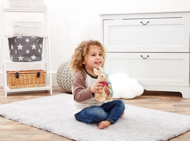 Het pluche konijntje Flopsy is gemaakt van hoogwaardige, ultrazachte stoffen die prettig aanvoelen en zacht zijn voor de kinderhuid. De vriendelijke blik, lange oortjes en contrasterende strik maken hem tot een favoriete metgezel voor het slapengaan en op reis.