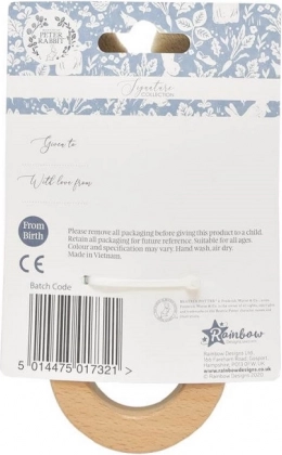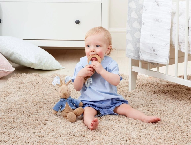 Het zachte gerammel wekt nieuwsgierigheid en concentratie, terwijl de gladde houten ring helpt het tandvlees te masseren en onrustige tandjes te verzachten. Het tijdloze design, geïnspireerd op de klassieke verhalen van BEATRIX POTTER, past prachtig in elke babyuitzet.