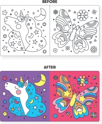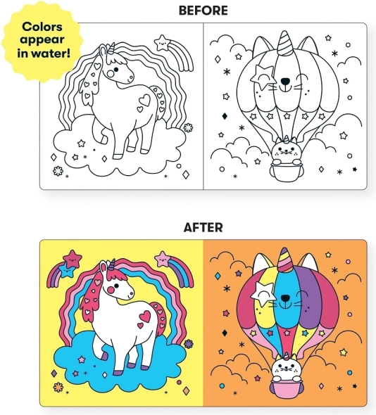 Dit betoverende badboekje wordt de favoriete metgezel van ieder kind in bad. Het boekje is zo ontworpen dat de afbeeldingen veranderen wanneer het in water wordt ondergedompeld, wat kinderen enthousiast maakt en hen tegelijk inspireert om nieuwe dingen te ontdekken. De reeks aan levendige kleuren en charmante eenhoorns trekt de aandacht en is daarom ideaal voor kinderen vanaf zeer jonge leeftijd.