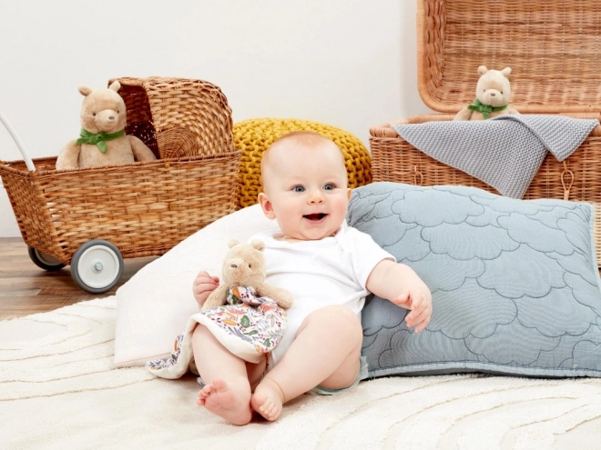 Het WINNIE DE POEH knuffeldoekje is een zachte metgezel voor baby’s die geruststelt, een gevoel van veiligheid biedt en elk slaapmoment aangenamer maakt. De knuffelige pluche en zachte patroonstof nodigen uit tot aanraken en stimuleren de zintuigen. Dankzij het compacte formaat is het ideaal voor in het wiegje, de kinderwagen en onderweg.