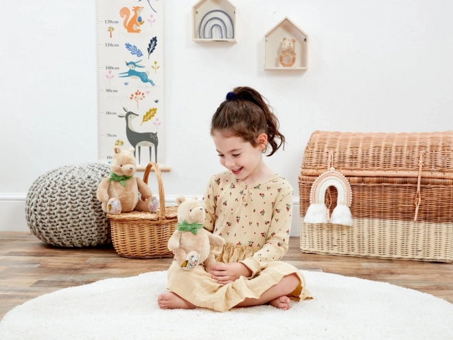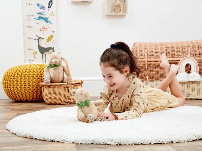 De beer is ontworpen met oog voor de planeet – de gebruikte materialen zijn duurzaam en de vulling bestaat uit vezels van gerecyclede plastic flessen. De stijlvolle groene sjaal met strikje en het subtiele bosmotief op de pootjes geven hem een tijdloze uitstraling die zowel kinderen als ouders zal bevallen. Geschikt vanaf de geboorte, ook geweldig als kraamcadeau.