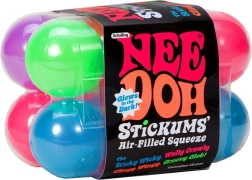 NeeDoh Stickums bieden een combinatie van ontspanning en plezier in een praktisch formaat. De balletjes hebben een aangenaam zacht, plakkerig oppervlak, waardoor je er niet alleen in kunt knijpen, maar ze ook kunt laten kleven en tegen gladde oppervlakken kunt gooien – muren, ramen of plafonds – en kijken hoe ze langzaam loslaten en naar beneden vallen.
