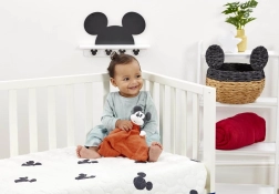 De MICKEY MOUSE knuffeldoek combineert het geliefde personage met een zachte knuffeldoek voor maximaal comfort. Tactiele elementen zoals de iconische zwarte oortjes en neus nodigen kinderen uit om te ontdekken, prikkelen de zintuigen en ondersteunen vroege motorische vaardigheden. Het superzachte materiaal geeft een gevoel van veiligheid, thuis en onderweg.
