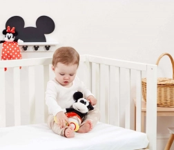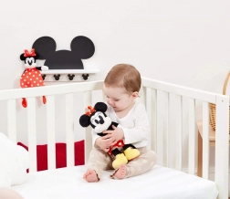 Het pluchen muisje MINNIE Activity biedt baby’s vanaf de geboorte zachte prikkels om de wereld te ontdekken. Het iconische design met rode strik en stippen zal kleine en grote fans van MICKEY & FRIENDS blij maken. Het compacte formaat van 18 cm is ideaal voor in het bedje, de kinderwagen en voor onderweg.