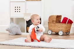 Voelknopen in de hoeken en de iconische oortjes stimuleren de ontwikkeling van de fijne motoriek en de nieuwsgierigheid van de allerkleinsten.
