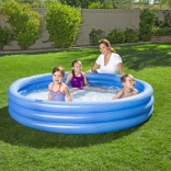 Het opblaasbare kinderzwembad van 183x33 cm past gemakkelijk in uw tuin of op uw terras en is eenvoudig met water te vullen. Dankzij de drie ronde lagen is het zwembad stevig en stabiel, ideaal voor veilig spel van uw kleintjes. Het zwembad is uitgerust met een reparatieset voor snelle reparatie van eventuele kleine beschadigingen.