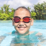 Bestway kinderzwembril geel 7+ is ontworpen voor maximaal comfort en oogbescherming tijdens het zwemmen. Dankzij de verstelbare siliconen band en het ergonomische design past hij gemakkelijk op elke gezichtsvorm. Deze bril biedt UV-bescherming en schokbestendige getinte lenzen die het zicht verbeteren en de ogen beschermen tegen zonnestraling en reflecties.