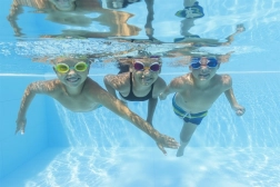 Duurzame polycarbonaat lenzen met UV-filter beschermen de ogen tegen de zon en chloorwater.