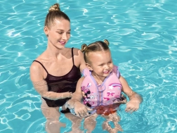 Geïntegreerde schuimpanelen helpen het kind drijven zonder oppompen en bieden een natuurlijke bewegingsvrijheid tijdens het leren zwemmen.