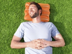 Het kussentje is uitgerust met een veiligheidsventiel dat ongewenst luchtverlies voorkomt. De ergonomische ribbelstructuur op het oppervlak verhoogt het comfort tijdens liggen en zitten. Overdag dient het als zacht onderkussen, ’s nachts als praktisch hoofdkussen – zonder pomp nodig.