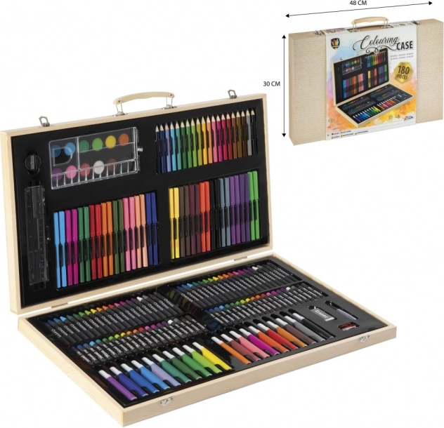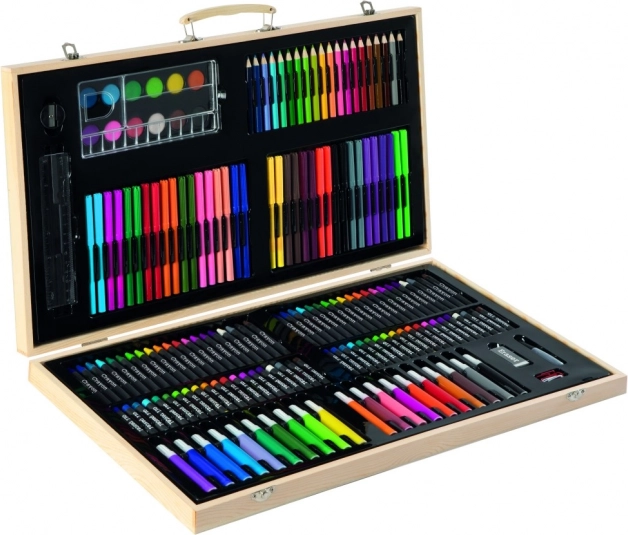 Deze praktische houten schilderskoffer biedt een ruime uitrusting om fantasie en creativiteit te ontwikkelen. In de set vind je kleurpotloden, stiften, aquarelverf en andere hulpmiddelen waarmee je eenvoudig levendige illustraties, schetsen en kleurrijke schilderijen maakt. Dankzij de stevige koffer zijn alle onderdelen overzichtelijk geordend en veilig opgeborgen.