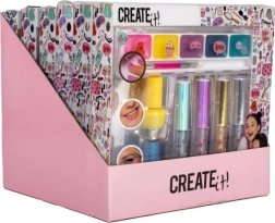 Deze kleurrijke CREATE IT! make-upset biedt alles wat kinderen nodig hebben voor een eerste, veilige kennismaking met cosmetica. Metallic tinten en sprankelende effecten toveren een originele look voor elk kinderfeestje en voor middagen vol spel.