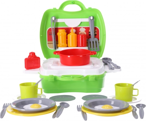 Deze keukenset bevat alles wat nodig is voor de culinaire ideeën van je kinderen. Hij is gemakkelijk mee te nemen dankzij het tas-ontwerp, zodat je hem overal kunt neerzetten en spelen waar nodig. De set is ontworpen om de verbeeldingskracht van kinderen te ontwikkelen en kinderen te helpen objecten te herkennen terwijl ze plezier hebben.