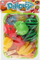 Deze kindvriendelijke fruit-snijset brengt realistisch en veilig speelplezier naar elke kinderkamer. Met accessoires zoals een mes, vork, snijplank en serveerblad oefenen kinderen hun fijne motoriek, oog-handcoördinatie en leren ze spelenderwijs de basis van voedselbereiding.
