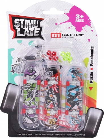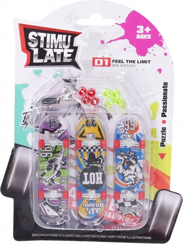 Geniet van veel plezier met een praktische set fingerboards voor zowel beginners als gevorderden. De verpakking bevat 3 complete fingerboards, gekleurde wieltjes, reserveschroefjes en een schroevendraaiertje voor eenvoudige aanpassingen. Ideale grootte van 9,5 cm voor tricks thuis en onderweg.