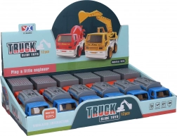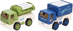 Deze vrachtwagen wordt aangedreven door een vliegwiel, wat betekent dat het na opwinden vanzelf rijdt zonder verdere druk. Er zijn twee varianten beschikbaar: tanker en vuilniswagen. Het valt op door de kwaliteit afwerking en details die elk kind zullen aanspreken.