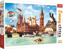- De puzzel bevat een collage van afbeeldingen van verschillende hondenrassen in het herkenbare decor van Londen.</li>