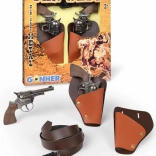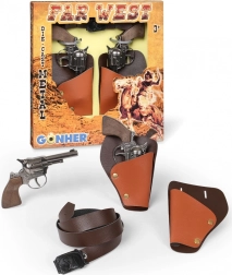 Deze metalen cowboyset met revolvers brengt zowel kinderen als volwassenen in klassieke westernsfeer. Twee hoogwaardige metalen exemplaren inclusief gezamenlijk holster zijn eenvoudig te dragen en liggen goed in de hand. Dankzij het geluidseffect werken ze realistisch, terwijl ze toch veilig zijn – zonder schieten en zonder munitie.