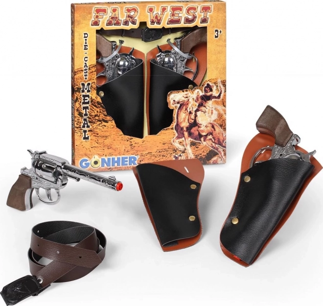 Cowboyset Gonher is de perfecte accessoire voor kleine schutters. Bevat twee metalen revolvers met een capaciteit van 100 schoten en een praktische riemholster.