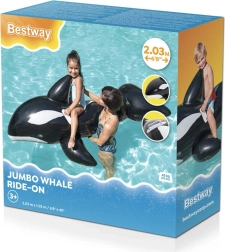 Geniet van de zomer met de iconische opblaasbare orka van Bestway met afmetingen 203 × 102 cm. Biedt veel ruimte, stevige handgrepen voor zekerheid tijdens het rijden en duurzaam vinyl van 0,27 mm voor een lange levensduur. Ideaal voor in het zwembad en op kalm water, voor kinderen vanaf 3 jaar.