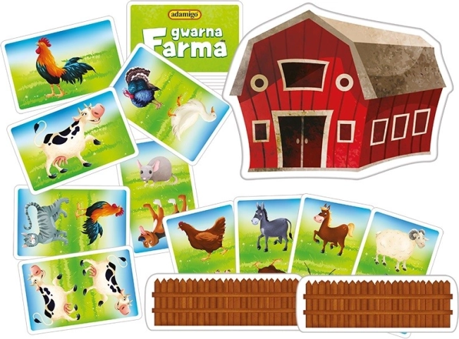 Ontdek het snelle en vrolijke kaartspel Gwarna Farma van ADAMIGO, leuk voor het hele gezin. Spelers proberen zo snel mogelijk drie dezelfde dierenkaarten te vinden, ze aan hun boerderij toe te voegen en daarbij dierengeluiden na te doen. Het spel stimuleert snelle reacties, fijne motoriek en auditieve waarneming en is perfect voor kinderen vanaf 3 jaar.