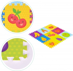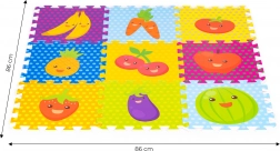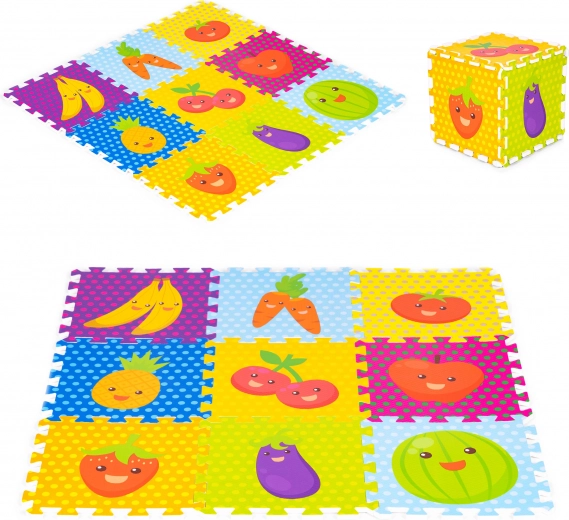 Schuimen speelmat met een fruit- en groentepuzzelmotief is ideaal om een veilige en knusse speelruimte voor kinderen te creëren. Dankzij de heldere kleuren en vrolijke patronen helpt het de verbeelding en motorische vaardigheden van kinderen te ontwikkelen.