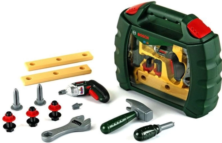 De set bevat een schroevendraaier, steeksleutel, hamer, schroeven, spijkers en twee montagestrips met gaten om in te schroeven. De hoofdrol is voor de IXOLINO – een kinderschoevendraaier op accu met langzame en snelle toerentallen en achteruitfunctie. Dankzij de geluidseffecten voelt werken met het gereedschap net echt.