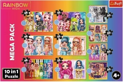 Geniet van uren plezier met de Mega Pack kinderspellen met puzzels met het thema Rainbow High van het merk Trefl. De verpakking biedt 10 verschillende puzzels in meerdere moeilijkheidsgraden voor geleidelijk leren en spelen. Dankzij de verschillende prints op de achterkant van de stukjes is het onderscheiden van de afzonderlijke afbeeldingen snel en eenvoudig.