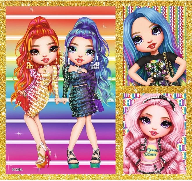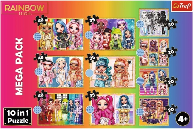 De set bevat een gevarieerde mix van puzzels voor kleine en grotere puzzelaars: vier puzzels van 20 stukjes, drie puzzels van 35 stukjes en drie puzzels van 48 stukjes. Elk motief uit de populaire wereld van Rainbow High brengt levendige kleuren en plezier bij het voltooien van het plaatje.