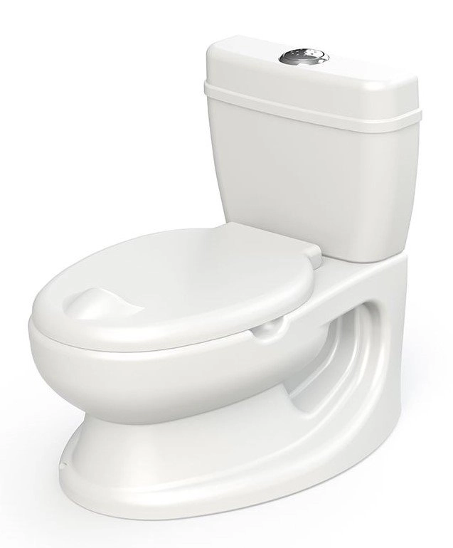 De knop aan de bovenzijde van het potje maakt een authentiek doorspoelgeluid dat kinderen leuk vinden en motiveert om regelmatig het toilet te gebruiken.