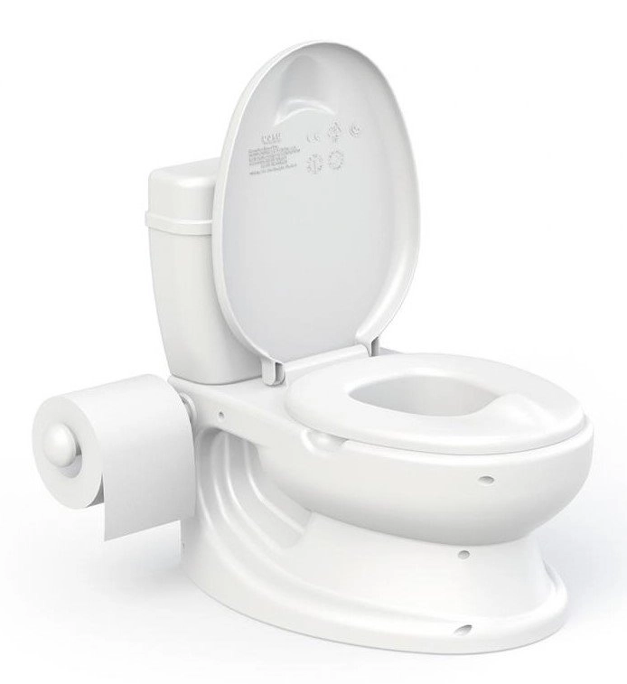Realistisch potje in de vorm van een toilet helpt kinderen op een leuke en motiverende manier over te stappen van luier naar wc. Biedt een doorspoelgeluid, een houder voor toiletpapier, een uitneembare kom voor eenvoudig schoonmaken en een anti-slip basis voor veilig gebruik.