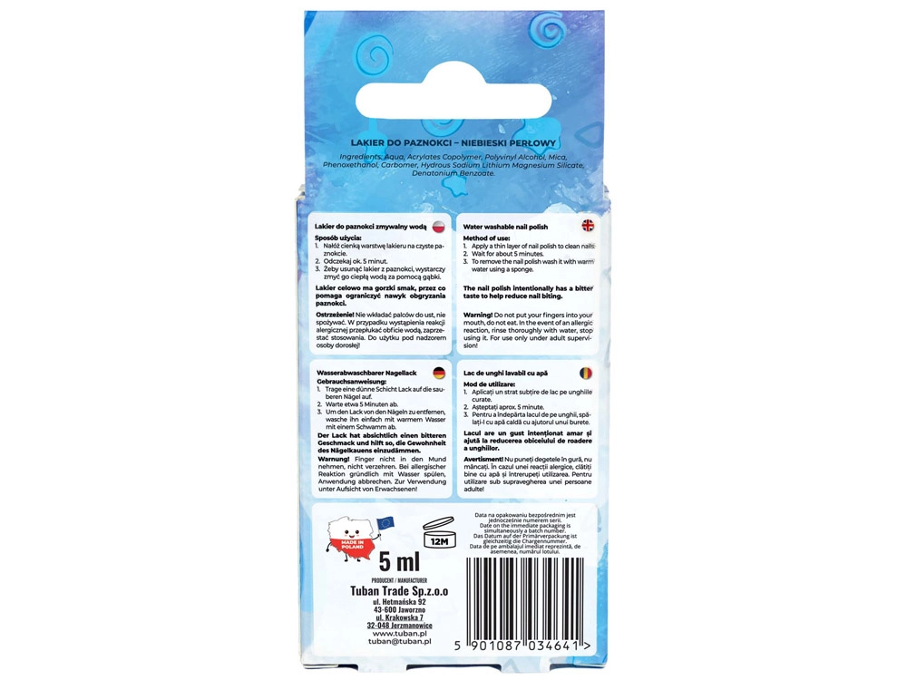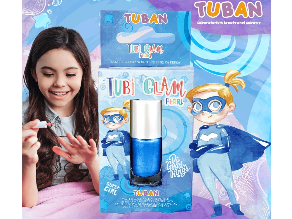 De parelmoer-serie nagellakken Tubi Glam van het merk TUBAN biedt niet alleen mooie blauwe tinten, maar vooral ook de garantie van veiligheid tijdens het gebruik. Deze lak is ontworpen om 100% veilig te zijn voor tere kinder nagels.