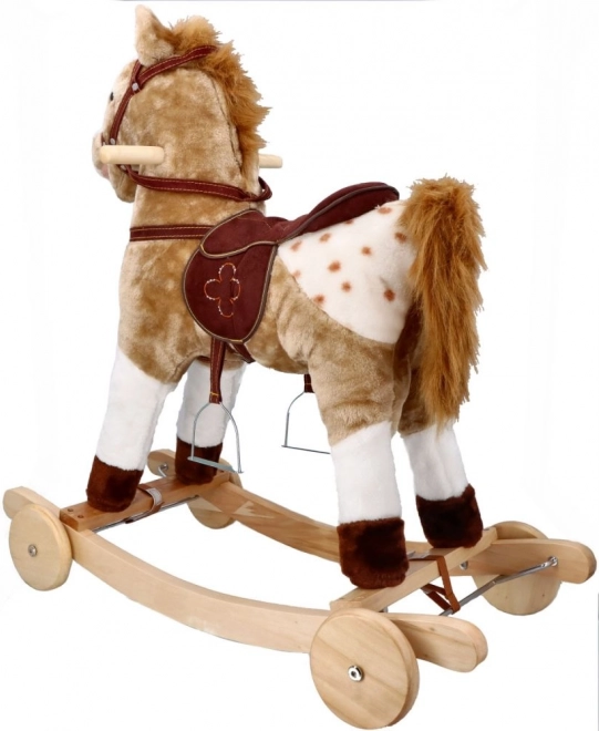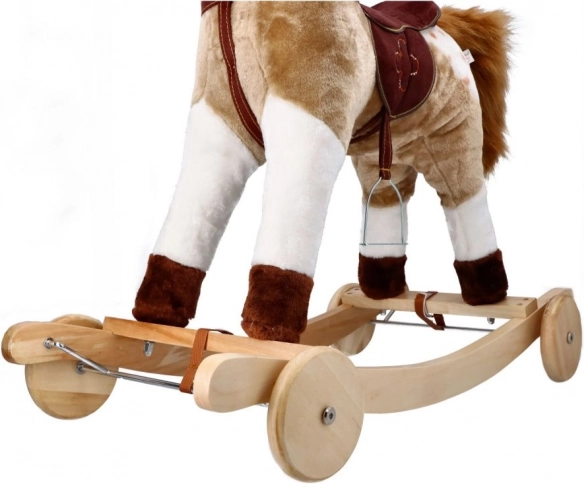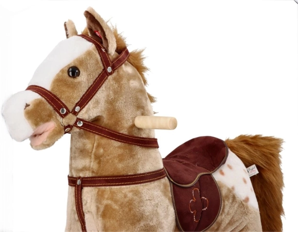 Met stevige houten inschuifstukken en zachte textiele materialen biedt het paard een veilige en comfortabele spelervaring.