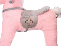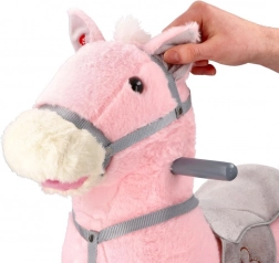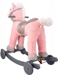 Het hobbelpaard is bedoeld voor kinderen vanaf 3 jaar en heeft een maximaal draagvermogen van 50 kg. Dankzij de stevige houten rockers met wielen kan het paardje zowel worden gebruikt om te schommelen als om te rijden, wat de speelmogelijkheden vergroot. De roze kleur en het grijze zadel met bloemenpatroon geven het product een esthetische uitstraling die elk kind zal aanspreken.