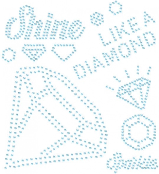 De fijne steentjes vormen een tekst en geometrische “diamanten” die elk kledingstuk laten stralen. Ideaal voor snelle en opvallende personalisatie.