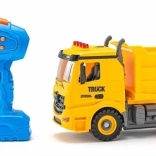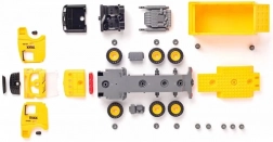 De set bevat kunststof voertuigonderdelen en wielen voor eigen montage. Kinderen zetten het voertuig in elkaar en kunnen direct naar de bouwplaats vertrekken.