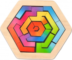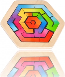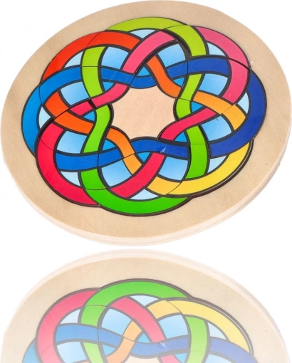 Creatieve mozaïekpuzzel in een ronde houten lijst die zowel jonge als oudere bouwers zal bekoren. Met 16 kleurrijke stukjes maak je originele patronen volgens voorbeeld of eigen fantasie. Bevordert de fijne motoriek, geduld en kleurherkenning, is gemaakt van hout met verf op waterbasis en kan in de lijst of daarbuiten worden gelegd.