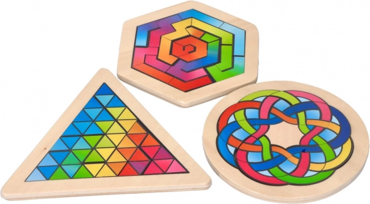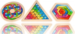Kleurrijke stukjes vormen duidelijke patronen en complexere ornamenten. Kinderen trainen hun verbeeldingskracht en het waarnemen van kleuren en vormen.