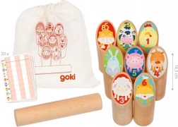 Ontdek het leuke familiespel kubb in een kinderversie met dieren, ideaal voor de eerste gooi-oefeningen. Houten kegels helpen bij het ontwikkelen van fijne motoriek, gooinauwkeurigheid en teamgeest in een speelse competitie. Het doel is om genummerde kegels om te gooien en zo een totaal van 30 punten te behalen. De set bevat alles wat je nodig hebt, inclusief een katoenen zak voor eenvoudig opbergen en meenemen.
