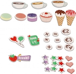 - Realistische koffiebar en ijstoonbank – knoppen, druktoetsen en accessoires voor het bereiden van “koffie”, desserts en ijsbolletjes.