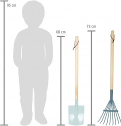 Ontdek de kwaliteitsset voor kleine tuiniers: spade, schop en twee harken in kinderformaat met stevige houten handgrepen en robuste metalen opzetstukken. Moderne kleuren, praktische ophanglussen en veelzijdig gebruik in de tuin, zandbak en op het strand maken deze set ideaal voor kinderen vanaf 3 jaar.