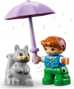 De set zit boordevol accessoires voor fantasierijke scènes – van een picknick onder de parasol, via tuinieren met kruiwagen en pompoen, tot rijden op een skateboard met helm. Vijf figuren en drie dieren (vogel, kat, eekhoorn) inspireren tot rollenspel en samen spelen met ouders.