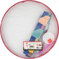 De verpakking bevat een houten frame met opgespannen doek, zodat je het voltooide werk direct kunt ophangen. De complete set bevat alle tools en een set gekleurde steentjes – trek simpelweg de beschermfolie stukje voor stukje los, neem was op met de pen en begin met creëren.