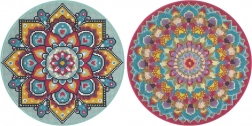 Een opvallend rond motief met rijke patronen en uitgesproken turkooizen tinten zorgt voor een elegante en stralende decoratie in elk interieur.